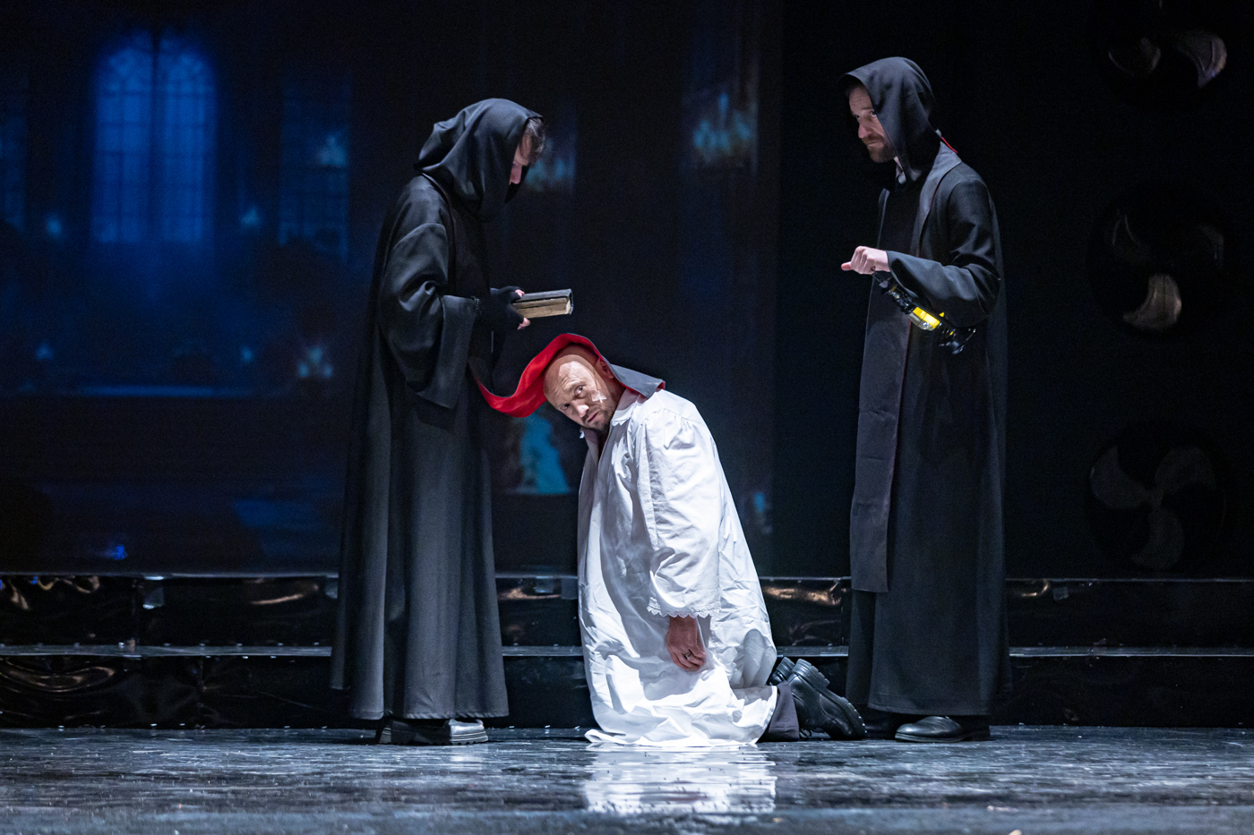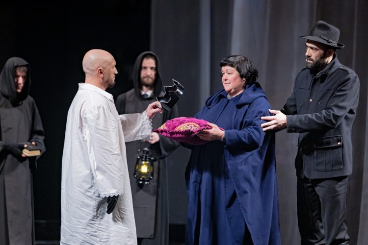 În zilele noastre, Richard al III-lea nu mai este doar un personaj din teatrul lui Shakespeare. Îl descoperim cu groază în buletinele de știri, îl recunoaștem în discursurile și ambițiile autoritare ale unor lideri politici, iar umbra lui se întinde tot mai amenințător asupra vieții noastre. Spectacolul nu vorbește despre cocoașa fizică a lui Richard, ci despre deformarea din mintea sa – prototipul monstrului cultivat, tolerat și lăsat să conducă lumea. Revenim la textul lui Shakespeare pentru a ne reaminti cât de periculos este să te lași sedus de fantasma „mâinii de fier”: o poveste menită să zguduie conștiințe, de urmărit pe scena teatrului și de asumat prin acțiune, pentru a nu deveni coșmarul lumii noastre.