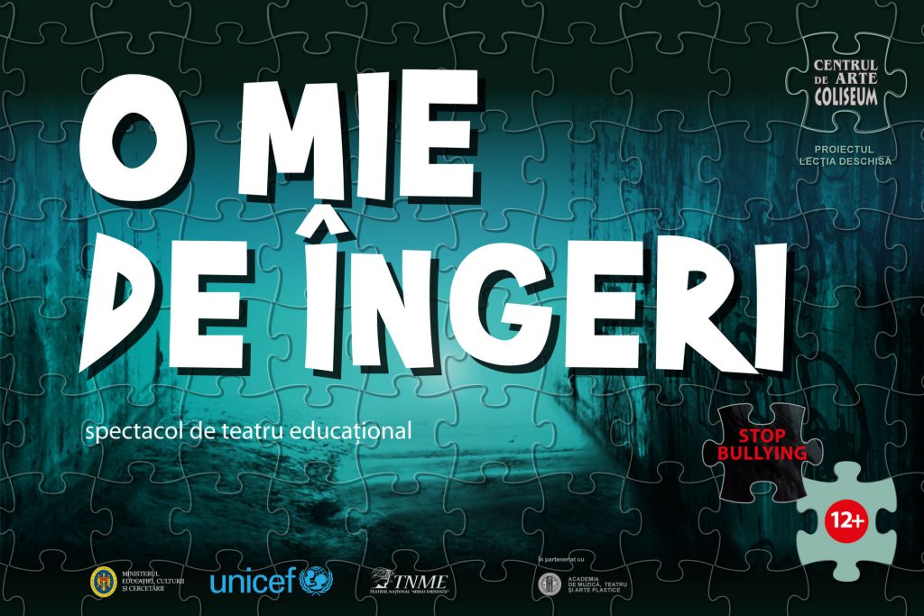 Vă așteptăm la spectacolul de teatru educațional ”O mie de îngeri” – un puzzle construit din interviuri, versuri create colectiv și scene din piesele autoarei Elise Wilk. O producție a Centrului de Arte COLISEUM